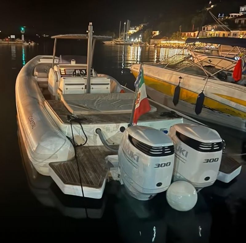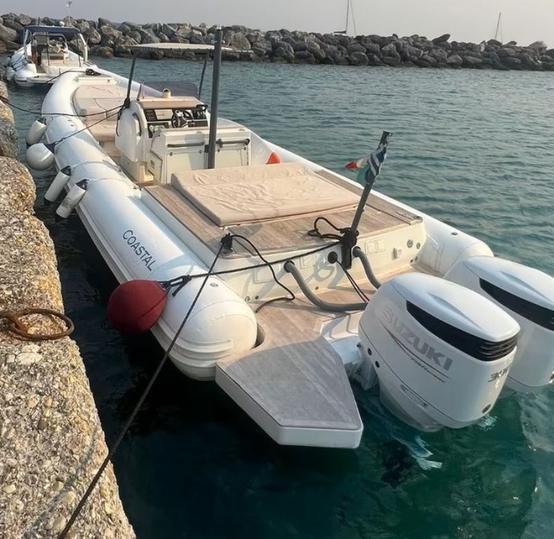 Splendido coastal 10 battello e motori 2023 (Suzuki 300) i motori hanno solo 65 ore di moto in garanzia fino al 2028. Il gommone è super accessoriato: teak , doppio frigorifero, gps garmin, cavo di terra, impianto stereo Fusion e molti altri. Il mezzo è pronto alla boa con nessun lavoro da effettuare